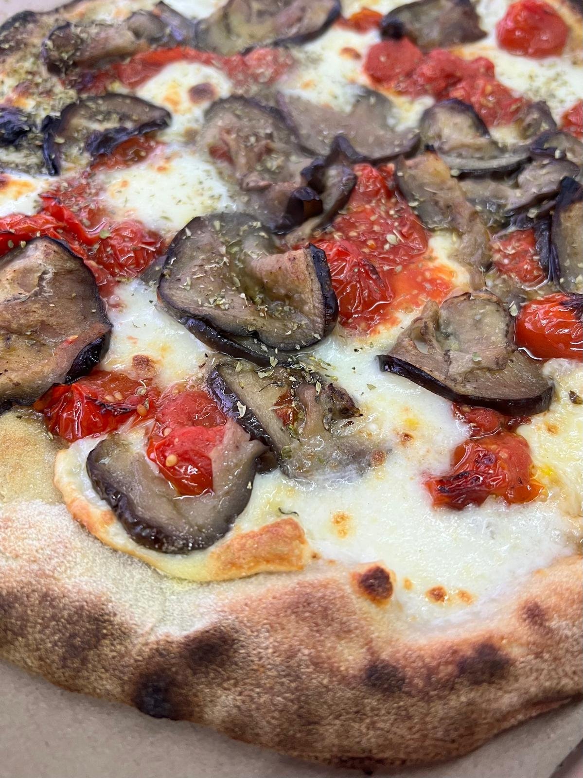 Mozzarella – parmesan – scamorza fumé – tomate cerises confites – aubergines confite – huile d’olive – origan